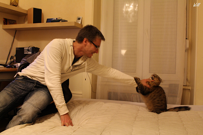 Ludovic本身是修車的師傅,他自己的工作室就在公寓的後面,熱愛本身工作的他,從早到晚就待在自己的工作室裡面,所以只有唯一一張他跟貓在玩耍的照片。